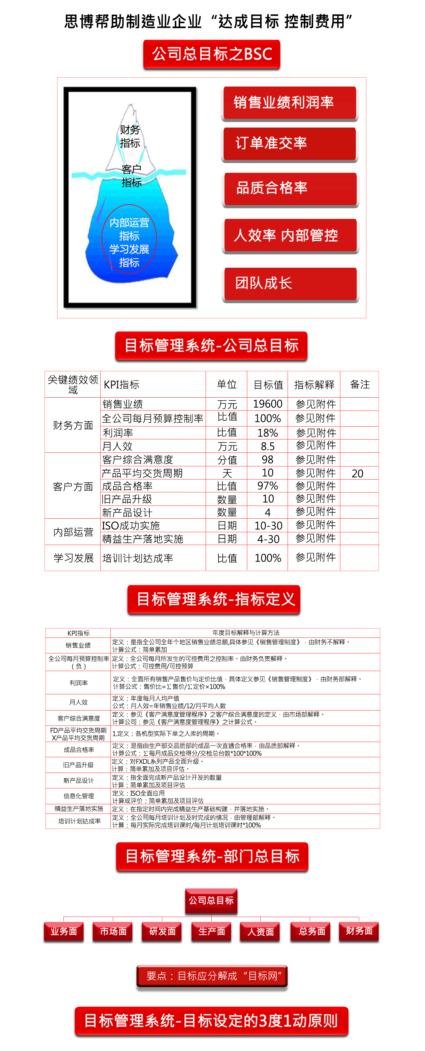 深圳市思博企業(yè)管理咨詢有限公司(sinbo) 是擁有多年管理實(shí)踐的實(shí)戰(zhàn)型管理咨詢企業(yè),思博數(shù)十人的咨詢師團(tuán)隊(duì)用近十年的時(shí)間潛心研究世界管理大師彼特·德魯克的目標(biāo)管理及臺灣陳宗賢教授的企業(yè)經(jīng)營計(jì)劃管理,同時(shí)深入日本、臺灣、歐美等知名企業(yè)學(xué)習(xí)先進(jìn)管理理念及技能,結(jié)合中國企業(yè)本土化的特點(diǎn),成功研究出一套適合中國國情的企業(yè)經(jīng)營管理系統(tǒng)《企業(yè)年度經(jīng)營計(jì)劃與全面預(yù)算管理》。該系統(tǒng)在思博團(tuán)隊(duì)的潛心指導(dǎo)下,已成功幫助中國數(shù)百家企業(yè)實(shí)現(xiàn)年業(yè)績增長40%